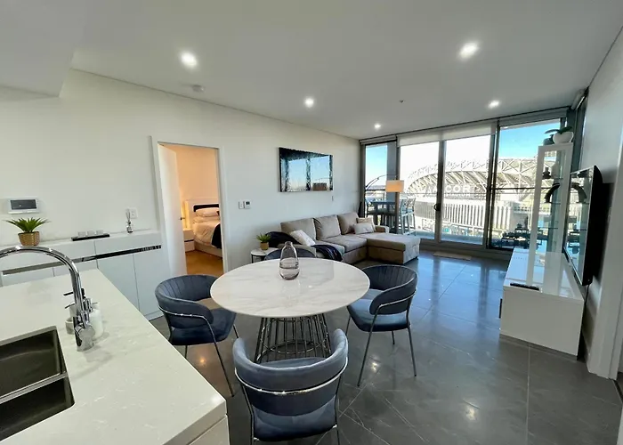 To enjoy your vacation in Sydney, stay at the 2-room Olympic Park Delight - 2 Bdrm -Parking - Views Apartment Sydney, which is 16 minutes' walk from Telstra Stadium and a mere 1.5 km from Sydney Showground. This 75 m² apartment is situated 950 metres from Olympic Park train station and within minutes of Carter St at Uhrig Rd bus station.